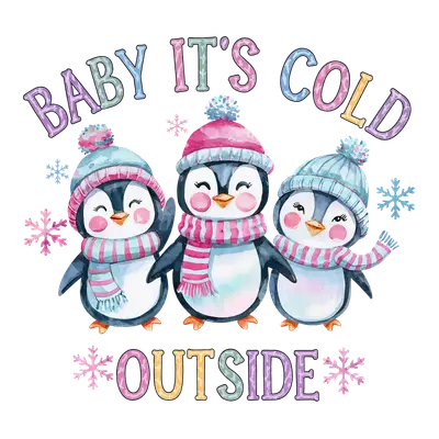 Cute Watercolor Penguins "Baby It's Cold Outside" DTF Transfer