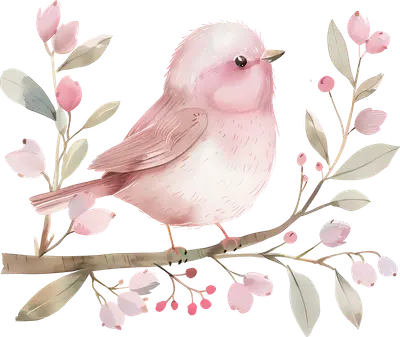 Cute Watercolor Pink Bird on Branch DTF Transfer