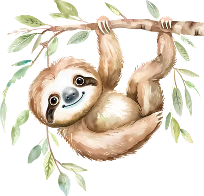 Cute Watercolor Sloth Hanging DTF Transfer