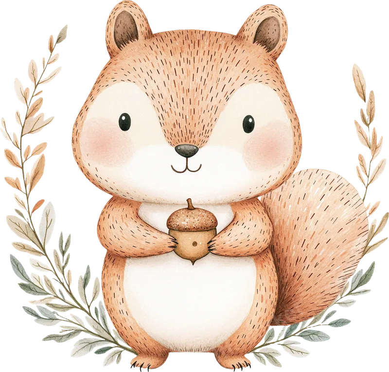 Cute Watercolor Squirrel Holding Acorn DTF Transfer Woodland Design