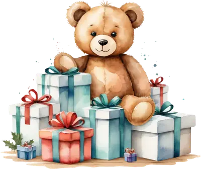 Cute Watercolor Teddy Bear with Christmas Gifts DTF Transfer