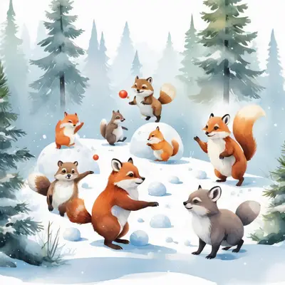 Cute Winter Animals Snowball Fight DTF Transfer | Fox & Squirrel Fun