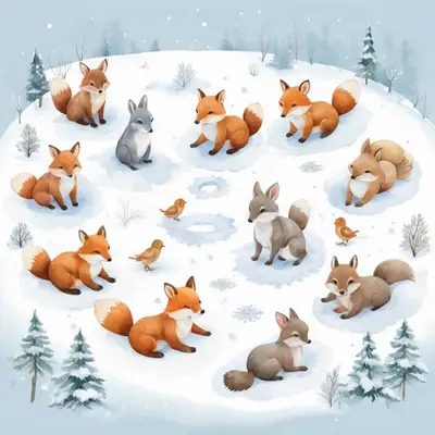 Cute Winter Woodland Animals DTF Transfer - Fox, Rabbit, Birds