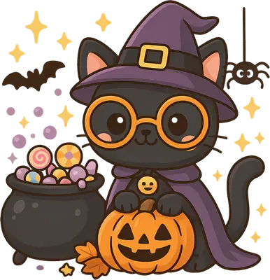 Cute Witch Black Cat Halloween DTF Transfer - Candy & Pumpkin