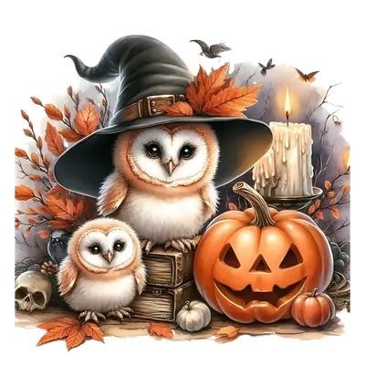 Cute Witch Owl & Baby Owl Halloween DTF Transfer