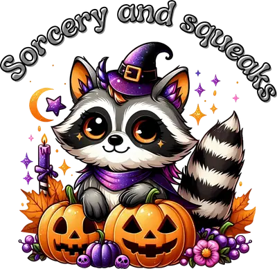 Cute Witch Raccoon DTF Transfer | Sorcery & Squeaks Halloween Design