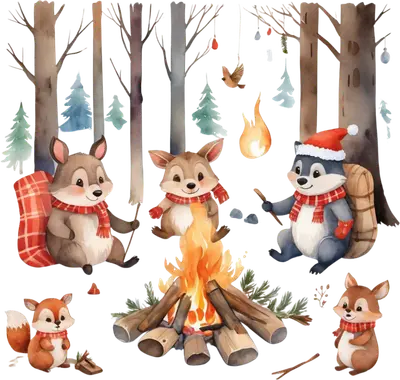 Cute Woodland Animals Campfire Christmas DTF Transfer