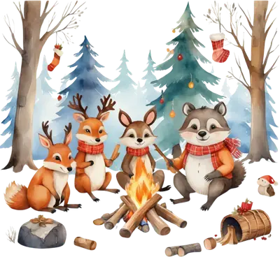 Cute Woodland Animals Christmas Campfire DTF Transfer