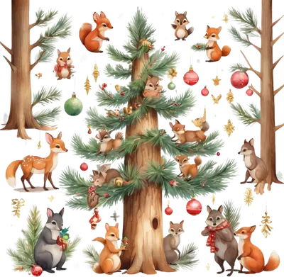 Cute Woodland Animals Christmas Tree DTF Transfer