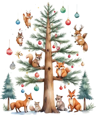 Cute Woodland Animals Christmas Tree DTF Transfer | Festive Forest Critters
