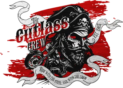 Cutlass Crew Pirate Skull Motorcycle DTF Transfer Biker Rider