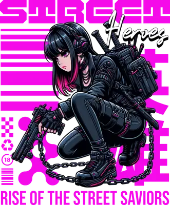 Cyberpunk Anime Girl DTF Transfer - Street Heroes Design