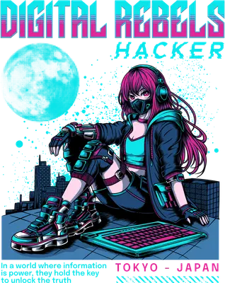 Cyberpunk Anime Girl Hacker DTF Transfer | Digital Rebels Tokyo