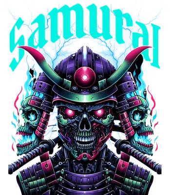 Cyberpunk Samurai Skull DTF Transfer | Edgy Sci-Fi Warrior Design