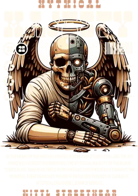 Cyborg Angel Skull DTF Transfer | Robotic Winged Skeleton Design