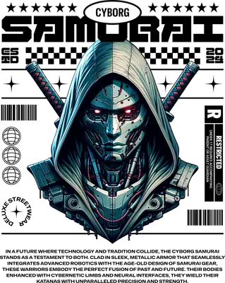 Cyborg Samurai DTF Transfer | Futuristic Robot Streetwear Apparel Design
