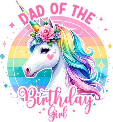 Dad of the Birthday Girl Unicorn Rainbow DTF Transfer