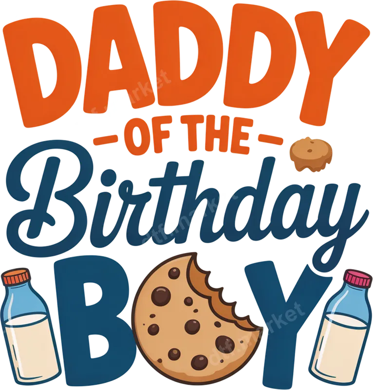 See allThis adorable "Daddy of the Birthday Boy" DTF transfer features playful orange and blue typography, accented with delicious chocolate chip cookies and classic milk bottles. It's the perfect ready to press transfer for any dad celebrating his son's special day. The vibrant design captures the joy and sweetness of a birthday celebration, making it an instant favorite for custom apparel. Designed for proud dads, this heat transfer is ideal for birthday parties, family gatherings, or as a thoughtful gift for Father's Day or any occasion. Imagine him wearing this unique heat press design on a t-shirt, showcasing his important role in his son's life. It's also a fantastic addition to family matching outfits for birthday events, creating memorable photos. Applying this direct to film transfer is straightforward and hassle-free. It works beautifully on a wide range of fabrics, including cotton, polyester, and their blends. Simply use a heat press at 300-325°F for 15 seconds with medium pressure. For those without a professional heat press, a household iron can also be used with care. Best of all, there's no weeding required, saving you time and effort. Our professional-grade DTF transfers are known for their exceptional quality. They deliver stunningly vibrant colors, resist cracking and peeling, and have a wonderfully soft feel on any garment. Each iron on transfer is crafted using durable DTF film with a strong adhesive, ensuring your custom t-shirt transfer will look fantastic and last through many washes, celebrating fatherhood for years to come.
