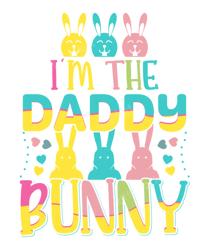 See allThis playful "I'm The Daddy Bunny" DTF transfer features cheerful pastel colors and six cute bunny faces, making it an ideal design for Easter celebrations. The vibrant lettering in yellow, teal, pink, and green creates a fun, festive aesthetic. This high-quality, ready to press design is perfect for customizing apparel quickly and easily. Designed for proud fathers, grandfathers, or any dad who loves to embrace the holiday spirit, this heat transfer makes a fantastic gift or personal statement. It's perfect for Easter egg hunts, family gatherings, church events, or simply enjoying the spring season. Surprise the "Daddy Bunny" in your life with a unique iron on transfer that's sure to bring smiles. Applying this direct to film transfer is straightforward and hassle-free. It works beautifully on a wide range of fabrics including cotton, polyester, and their blends. For best results, use a heat press at 300-325°F for 15 seconds with medium pressure. This versatile heat press design can also be applied with a household iron, and requires absolutely no weeding, saving you time and effort. Our professional-grade t-shirt transfers are crafted to deliver exceptional quality. Enjoy vibrant, true-to-color prints that are crack-resistant and incredibly soft to the touch. Each apparel transfer uses strong adhesive on premium DTF film, ensuring a durable finish that will withstand countless washes, keeping your custom garment looking fresh season after season.