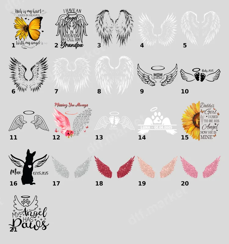 See allDesign 15 features a vibrant half-sunflower paired with the touching phrase "Daddy's Girl I Used To Be His Angel Now He Is Mine," adorned with delicate butterflies. This beautiful DTF transfer captures a sentiment of enduring love and remembrance, making it a powerful tribute to a father who has passed. It's a poignant and ready to press design perfect for honoring cherished memories. This heartfelt design is ideal for daughters wishing to keep their father's memory close, or for anyone seeking to create a meaningful memorial item. It's perfect for personalizing garments for remembrance gatherings, Father's Day tributes, or as a thoughtful gift for someone grieving. Create custom apparel that symbolizes a never-ending bond, ideal for everyday wear or special anniversaries. Our premium DTF transfers are incredibly versatile and can be applied seamlessly to a wide range of fabrics, including cotton, polyester, and various blends. For best results, use a heat press at 300-325°F for 15 seconds with medium pressure, then cold peel. While a heat press is recommended for professional results, this heat press design can also be applied with a household iron. No weeding is ever required, making application quick and easy. Experience superior quality with our direct to film transfer technology. Each design boasts vibrant colors, exceptional detail, and a soft, smooth finish that resists cracking and peeling, even after multiple washes. Crafted using professional-grade DTF film with strong adhesive, these durable iron on transfers ensure your custom creations look fantastic and last for years, providing a lasting homage to your loved one.