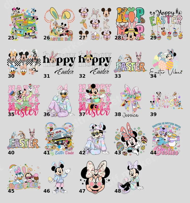See allThis "ready to press" DTF transfer showcases Daisy Duck rocking a trendy, pastel-colored hoodie and sweatpants, complete with stylish sunglasses and bunny ears. She sits casually, exuding a cool, relaxed Easter vibe. This vibrant direct to film transfer captures her modern animated charm, making it a standout for any fan. Soft hues of lavender, mint green, and baby blue give it a fresh, contemporary feel. Ideal for Disney lovers and Daisy Duck fans, this unique design is perfect for celebrating Easter, spring events, or adding animated fun to everyday wear. It makes a fantastic gift for friends, family, or yourself for birthdays, spring break, or to express a love for classic characters with a modern twist. It appeals to a youthful, trendy audience. Applying this heat press transfer is incredibly easy. Our high-quality DTF transfers work beautifully on 100% cotton, 100% polyester, and various cotton/poly blends. For best results, use a heat press at 300-325°F for 15 seconds with medium pressure, followed by a cool peel. This ready to press design requires no weeding, saving you time and effort. Expect superior quality with every iron on decal. Our DTF transfers boast vibrant colors, exceptional durability, and resistance to cracking or peeling after washes. The print remains soft to the touch, integrating seamlessly with the fabric. Crafted using professional-grade DTF film and strong adhesive, this apparel transfer ensures your custom creations will look fantastic and last.