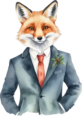 Dapper Fox in Suit & Christmas Boutonniere DTF Transfer