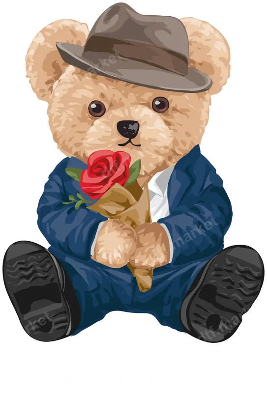 See allThis charming DTF transfer features a dapper teddy bear, impeccably dressed in a stylish blue suit and a sophisticated fedora. He holds a vibrant red rose bouquet, exuding sweet romance and classic gentlemanly charm. This ready to press design blends cute with cool, perfect for adding a distinguished touch to any garment or accessory. The intricate details and rich colors ensure this design stands out. This versatile heat transfer is ideal for anyone adding whimsy and elegance to their wardrobe. It makes a thoughtful gift for birthdays, anniversaries, or Valentine's Day, perfect for loved ones appreciating unique fashion statements. Craft bespoke apparel for streetwear enthusiasts, teddy bear collectors, or those who enjoy romantic designs. Imagine this iron on decal on a custom t-shirt for a special event. Our premium DTF transfers are designed for easy application on cotton, polyester, and blends. Simply apply with a heat press at 300-325°F for 15 seconds with medium pressure. A household iron can also achieve excellent results for home users. These ready to press transfers eliminate weeding, making customization quick, clean, and hassle-free, unlike traditional vinyl transfers. Experience superior quality with our vibrant, crack-resistant DTF film, engineered for long-lasting wear and a soft, smooth feel. The professional-grade adhesive ensures your heat press design adheres perfectly, maintaining integrity wash after wash. Each apparel transfer delivers crisp details and brilliant colors, making your custom shirt design truly professional. Elevate your garments with a durable, high-quality finish.