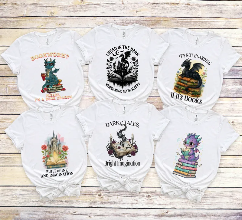 See allThis captivating "I Read in the Dark Where Magic Never Sleeps" DTF transfer features a majestic dragon perched atop an ancient tome, surrounded by a gothic castle and mystical roses. It's a striking design for anyone who finds enchantment within the pages of a book, offering a blend of fantasy and dark academia aesthetics. This heat press ready design is perfect for bringing a unique, magical touch to your apparel. Ideal for fantasy literature enthusiasts, avid readers, librarians, or anyone who cherishes the escape that books provide. This versatile heat press transfer makes an excellent gift for birthdays, holidays, or just because. Show off your love for magical tales and literary adventures on your favorite garments, whether for casual wear, book club meetings, or fantasy conventions. Our premium direct to film transfer is incredibly easy to apply. Simply use a heat press at 300-325°F for 15 seconds with medium, even pressure. This iron on transfer adheres perfectly to cotton, polyester, and most fabric blends. Unlike traditional vinyl transfer, there's no tedious weeding required – just press and peel for a professional finish. Experience the highest quality with our vibrant, crack-resistant, and soft-to-the-touch t-shirt transfer. Each design is printed on professional-grade DTF film using strong adhesive, ensuring durability and a flawless look even after numerous washes. Elevate your wardrobe with a design that truly stands out.