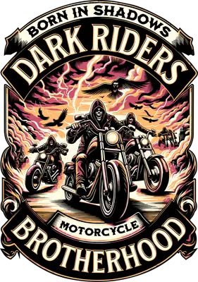 Dark Riders Motorcycle Brotherhood DTF Transfer | Born in Shadows Biker Heat Press Design