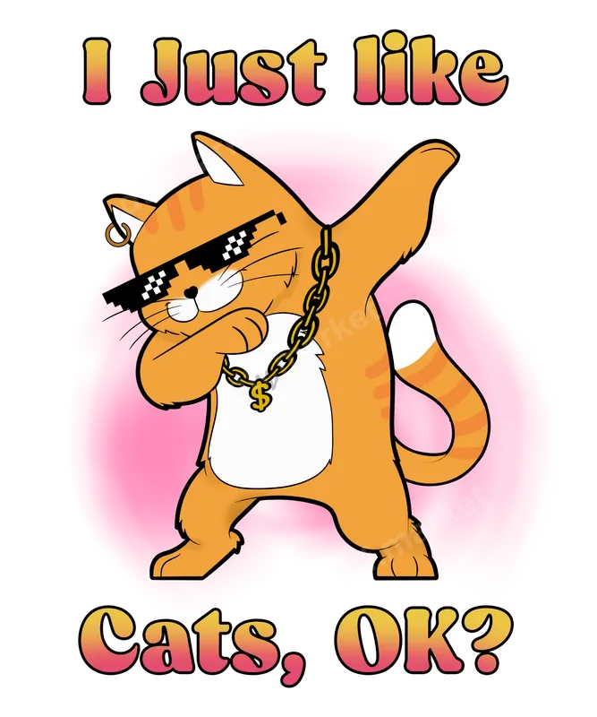 See allShow off your feline affection with this incredibly funny 'I Just like Cats, OK?' DTF transfer. This vibrant design features a cool orange tabby cat sporting pixelated 'deal with it' sunglasses, a gold chain with a dollar sign pendant, and an earring, striking a playful dab pose. The colorful gradient text perfectly complements this humorous and slightly sassy ready to press transfer, ideal for any cat enthusiast. This unique direct to film transfer is ideal for cat owners, meme lovers, and anyone with a sarcastic sense of humor. It makes an excellent gift for birthdays, holidays, or just because, for friends and family who appreciate quirky animal designs. Perfect for casual wear, pet adoption events, or simply lounging at home, this heat press design is sure to bring smiles and start conversations. Applying this durable iron on transfer is a breeze! Our high-quality apparel transfer works beautifully on a wide range of fabrics, including cotton, polyester, and blends. Simply use a heat press at 300-325°F for 15 seconds with medium pressure, then cold peel. No tedious weeding or layering required, unlike vinyl transfers. A household iron can also be used, but a professional heat press is recommended for best results. Expect professional results every time. Our DTF transfers are known for their exceptional vibrancy, soft-to-the-touch feel, and outstanding durability. They are crack-resistant and hold up beautifully through countless washes, ensuring your personalized garments look great for a long time. Each shirt design is printed on premium DTF film with a strong adhesive layer for a flawless application and lasting wear.