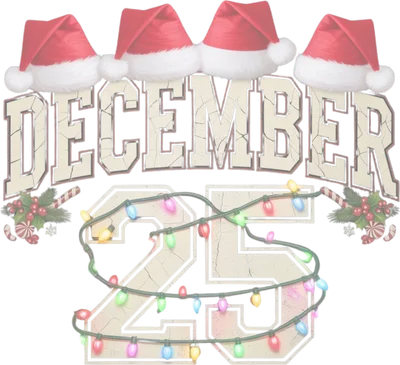 December 25 Christmas DTF Transfer | Santa Hats & Holiday Lights