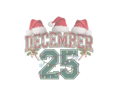 See allEmbrace the most wonderful time of the year with our charming December 25 Christmas DTF transfer. This festive design features the iconic date in a collegiate-style font, with "DECEMBER" in distressed red and "25" in a cozy green, playfully adorned with colorful Christmas lights. Three jolly Santa hats sit atop the text, complemented by cheerful holly berries, candy canes, and a delicate snowflake, making this a perfect ready to press design for all your holiday apparel needs. This delightful iron on transfer is ideal for anyone looking to add a touch of holiday spirit to their wardrobe or craft projects. It's perfect for small business owners creating seasonal inventory, crafters designing custom gifts, families planning matching holiday outfits, or individuals preparing for Christmas parties and events. Use this heat transfer design to create memorable attire for Christmas morning, festive gatherings, or even a fun ugly sweater contest. Applying this heat press transfer is a breeze! It adheres beautifully to a wide range of fabrics including cotton, polyester, cotton-poly blends, and even nylon. For best results, use a heat press at 300-325°F for 15 seconds with medium pressure, then simply peel the film cold. No weeding is required – just peel and press! It's fantastic for custom t-shirts, cozy hoodies, sweatshirts, tote bags, festive pillow covers, baby onesies, aprons, and denim jackets. For lasting durability, wash garments inside out and tumble dry low. Experience professional-grade results with this high-quality ready to press transfer. Featuring vibrant, full-color printing and exceptional fine detail, this design is crack-resistant and boasts a soft, lightweight feel without the heavy bulk of traditional vinyl. Each direct to film transfer is meticulously printed on premium DTF film with a strong, reliable adhesive backing, ensuring your creations look fantastic and last for many holiday seasons to come.