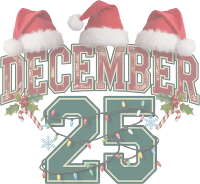 December 25 Christmas Santa Hats Holly & Lights DTF Transfer