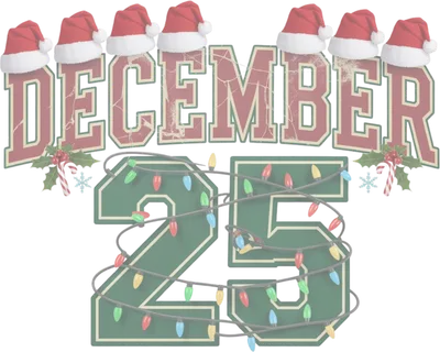 December 25th Collegiate Christmas DTF Transfer with Santa Hats
