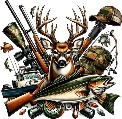 Deer, Fish & Hunting Gear DTF Transfer - Outdoorsmen Ready to Press