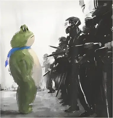 Defiant Frog Against Riot Police DTF Transfer