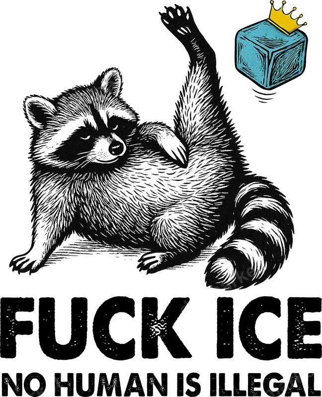 See allUnleash your voice with this striking DTF transfer featuring a defiant, linocut-style raccoon, paws raised in a powerful stance. Above the raccoon, a crowned ice cube adds a touch of edgy symbolism, while below, the bold text "FUCK ICE NO HUMAN IS ILLEGAL" makes an undeniable statement. This ready to press design is perfect for those who believe in human rights and advocate for social justice. This powerful heat transfer is designed for activists, human rights advocates, and anyone passionate about immigration rights and social justice. It’s an ideal way to express your stance at rallies, protests, or for everyday wear. Gift this impactful apparel transfer to a fellow activist or add it to your own collection to spark conversations and show solidarity. Applying this iron on transfer is straightforward and hassle-free. It adheres perfectly to a wide range of materials including cotton, polyester, and their blends, making it versatile for various garments. For best results, use a heat press at 300-325°F for 15 seconds with medium pressure. It can also be applied with a household iron, ensuring accessibility for all crafters. Forget the tedious weeding process—this design is print-and-press ready. Crafted with professional-grade DTF film, this transfer promises vibrant, true-to-design colors that remain crack-resistant and soft to the touch, even after multiple washes. Our advanced printing technology ensures exceptional detail and durability, providing a long-lasting shirt design that keeps your message clear and impactful.