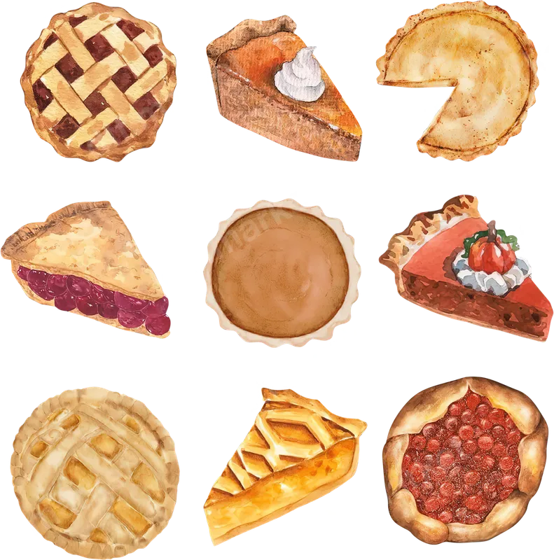 Delicious Watercolor Holiday Pie Collection DTF Transfer