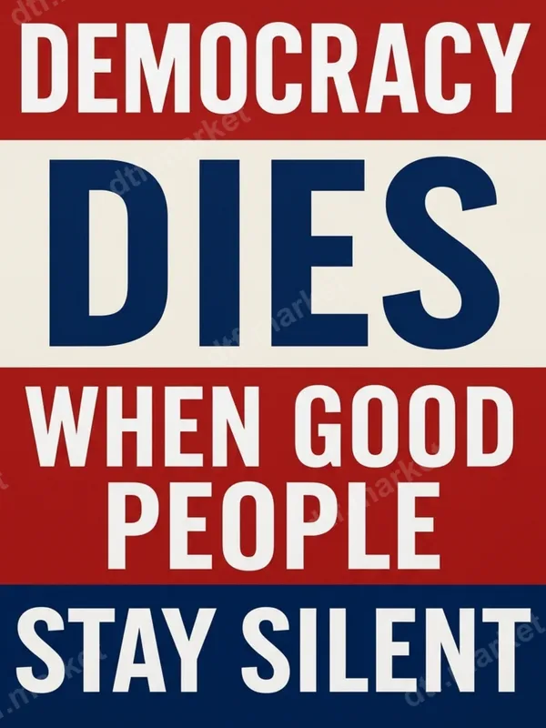 See allThis impactful DTF transfer features the powerful message "Democracy Dies When Good People Stay Silent" in a striking red, white, and blue design. The bold, block lettering ensures your statement is seen and understood, making it an ideal ready to press transfer for anyone passionate about civic engagement and political discourse. It's a visually strong heat press design that stands out on any garment. This design is perfect for active citizens, political enthusiasts, and anyone who believes in the importance of voice and participation. It makes an excellent statement piece for rallies, community events, election days, or simply as everyday wear to inspire conversation. Gifting this iron on transfer is a thoughtful way to empower friends and family who advocate for change and democratic values. Applying this direct to film transfer is straightforward and efficient. It adheres beautifully to a wide range of materials including 100% cotton, polyester, and various fabric blends. For best results, use a heat press at 280-300°F (138-149°C) for 6-10 seconds with medium pressure, then perform an instant, hot peel. No weeding or intricate layering is required, simplifying your customization process. While a heat press is recommended for professional results, this versatile apparel transfer can also be applied with a household iron following careful instructions. Our professional-grade DTF transfers offer exceptional vibrancy and durability. The colors remain bold and true, and the design is crack-resistant, ensuring it withstands numerous washes. You'll appreciate the soft, flexible feel of the finished product on your fabric, unlike rigid vinyl transfers. Each t-shirt transfer is produced with a high-quality DTF film and strong adhesive for a lasting, professional finish that feels great and looks amazing.
