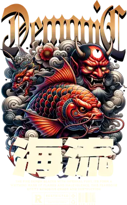 Demonic Hannya Oni Mask Koi Dragon DTF Transfer