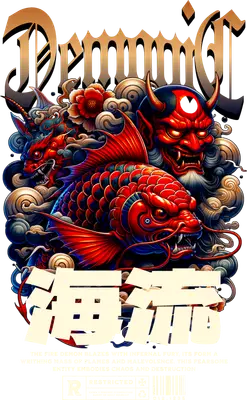 Demonic Oni Mask & Koi Dragon DTF Transfer | Japanese Mythology Art