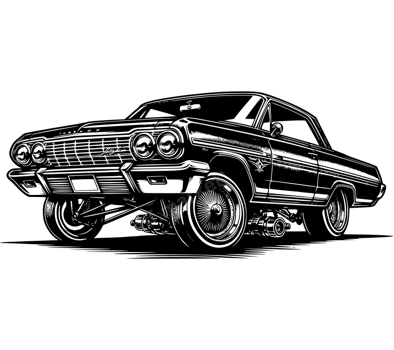 Detailed 64 Impala Lowrider Car DTF Transfer Chicano Style