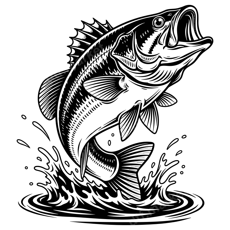Detailed Jumping Bass Fish DTF Transfer | Ready to Press Fishing Design