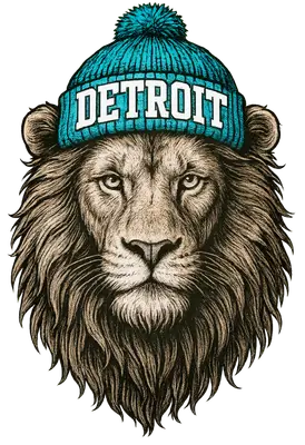 Detroit Lion Beanie DTF Transfer | Urban Big Cat Apparel Design