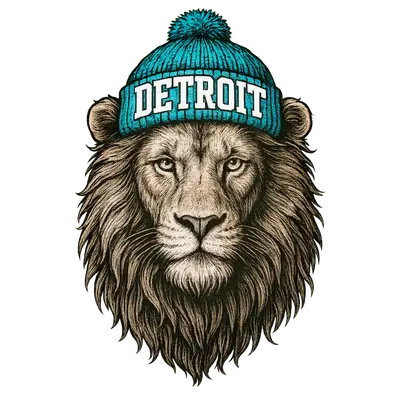 Detroit Lion Head DTF Transfer with Beanie | Ready to Press City Pride Design