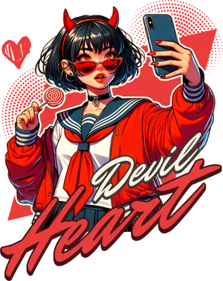Devil Heart Anime Girl Selfie DTF Transfer - Edgy Aesthetic