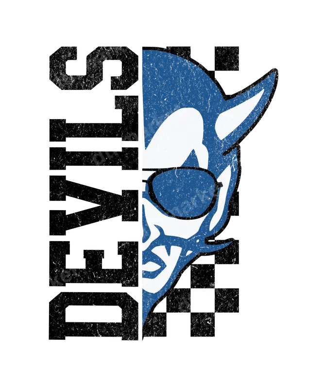 Devils Mascot DTF Transfer | Distressed Blue & Black Checkerboard