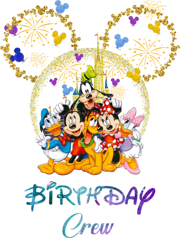 Disney Birthday Crew DTF Transfer | Mickey & Friends Castle Fireworks