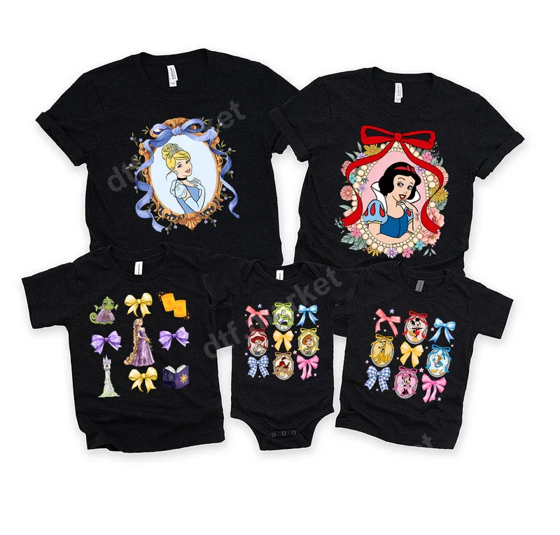 See allTransform your apparel with our enchanting collection of Disney-inspired DTF transfers. This delightful series features beloved characters like Cinderella, Snow White, Rapunzel, Mickey, Minnie, and friends, often adorned with charming bows and decorative frames. Each ready to press design bursts with vibrant colors, capturing the whimsical spirit of your favorite animated stories, making these direct to film transfers a joy to behold. Whether you're planning a magical family vacation to a theme park, celebrating a birthday, or simply want to showcase your love for Disney, these heat press designs are ideal gifts. Create custom t-shirts for siblings, unique onesies for babies, or personalized tote bags. Perfect for themed parties, casual wear, or making everyday items extra special, these iron on transfers let you express your fandom with style. Applying your Disney character heat transfer is incredibly easy, making garment customization accessible to everyone. Our apparel transfers are designed for effortless application on a wide range of materials, including 100% cotton, polyester, and various blends. For best results, use a heat press at 300-325°F for 15 seconds with medium pressure, then peel cold. You can also achieve great results with a household iron. Best of all, there's absolutely no weeding required, saving you time and effort. Experience professional-grade results with our premium DTF film. Each t-shirt transfer is engineered to be highly durable, ensuring your designs remain vibrant and crack-resistant even after numerous washes. The soft-touch finish integrates seamlessly with fabric, providing a comfortable feel without the bulk of traditional vinyl. With strong adhesive properties, these heat press ready designs adhere securely, offering a long-lasting, high-quality look that will impress.