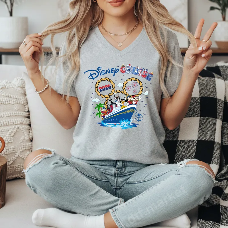 See allDive into the magic of your upcoming adventure with this vibrant Disney Cruise 2026 DTF transfer. This festive design features Mickey, Minnie, Donald, Goofy, Daisy, Pluto, and Chip & Dale aboard a classic cruise ship, surrounded by iconic rope-style Mickey ears, fireworks, and tropical palm trees. It's the perfect ready to press transfer to celebrate your exciting family vacation. This enchanting heat transfer is ideal for families, friends, and Disney enthusiasts planning their unforgettable Disney Cruise in 2026. Create matching group shirts for your entire travel party, commemorate a special trip, or give a unique gift to fellow cruise-goers. It's excellent for pre-cruise excitement and building anticipation for your magical journey. Our high-quality apparel transfer makes customizing your garments simple and fun. This versatile heat press design works flawlessly on cotton, polyester, and most fabric blends. Apply with a heat press at 300-325°F for 15 seconds with medium pressure, or easily create an iron on transfer using a household iron for smaller applications. Enjoy professional results with no weeding required – just press and go! Experience the superior quality of our professional-grade direct to film transfer. This heat press ready design boasts incredibly vibrant colors that pop, a soft hand feel, and excellent stretchability for crack-resistant wear. The strong adhesive ensures your custom transfer will last through countless washes and adventures.